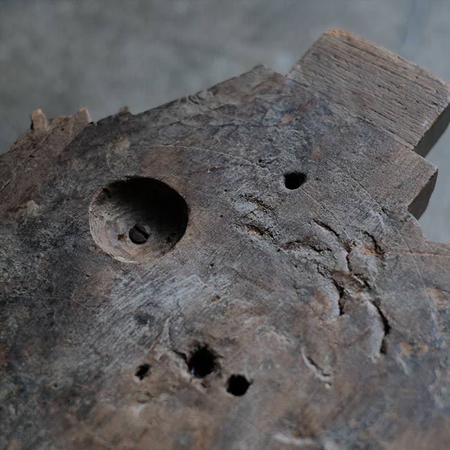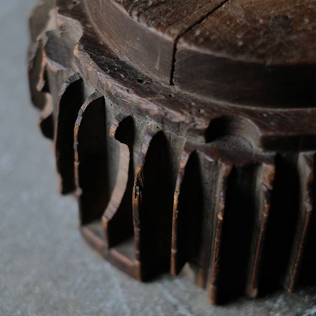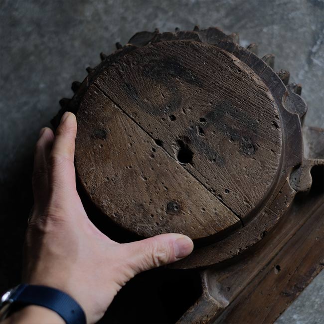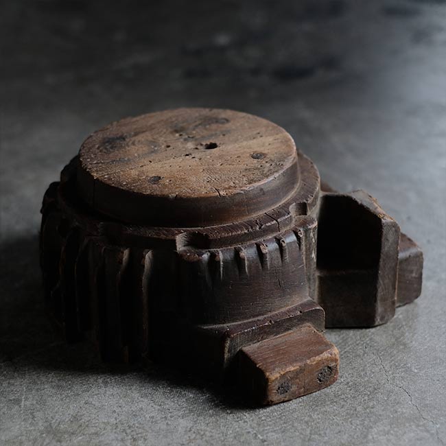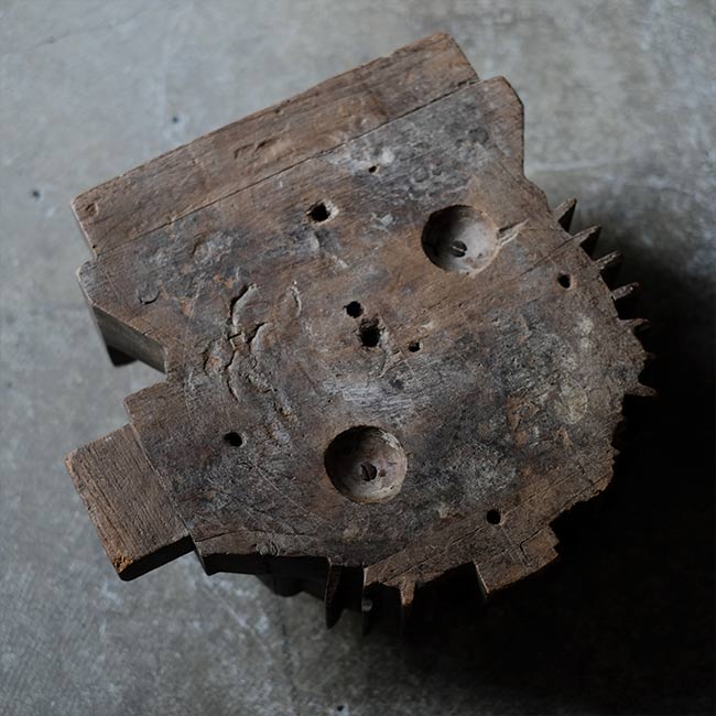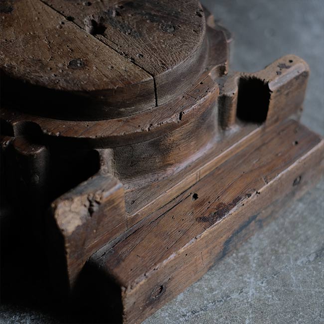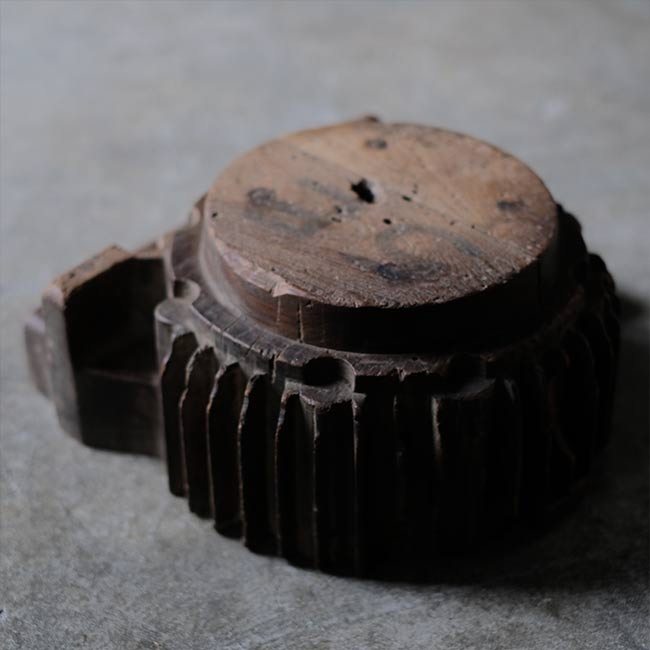 木型かと思いましたが、なんでも水車のパーツなのだそうです。仏像の台座(蓮台)にもどことなく似ていますが、いったいどんな部品だったのか。